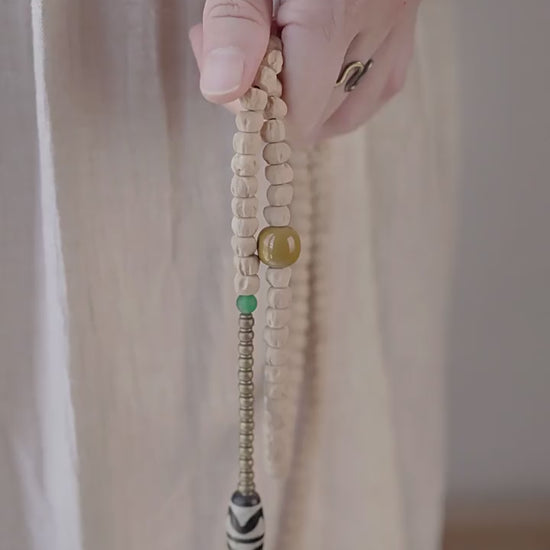 "Hand-selected aged seeds from the river valleys of eastern Tibet, with weathered surface patterns naturally forming the 'time rings' of high-altitude dry and wet seasons."