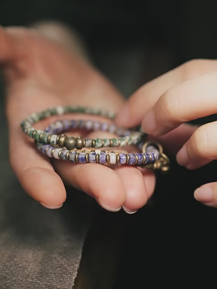 【Cinnabar Tide】Blue-Dotted Pattern Stone / Bronze Bracelet