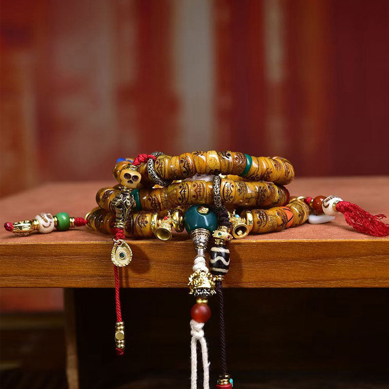 【Tibetan Beads Flame Spring】Carved Agate 108 Bead Pendant
