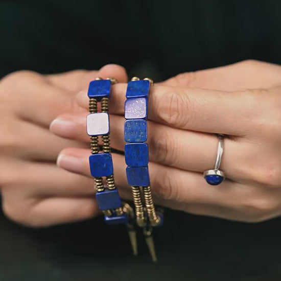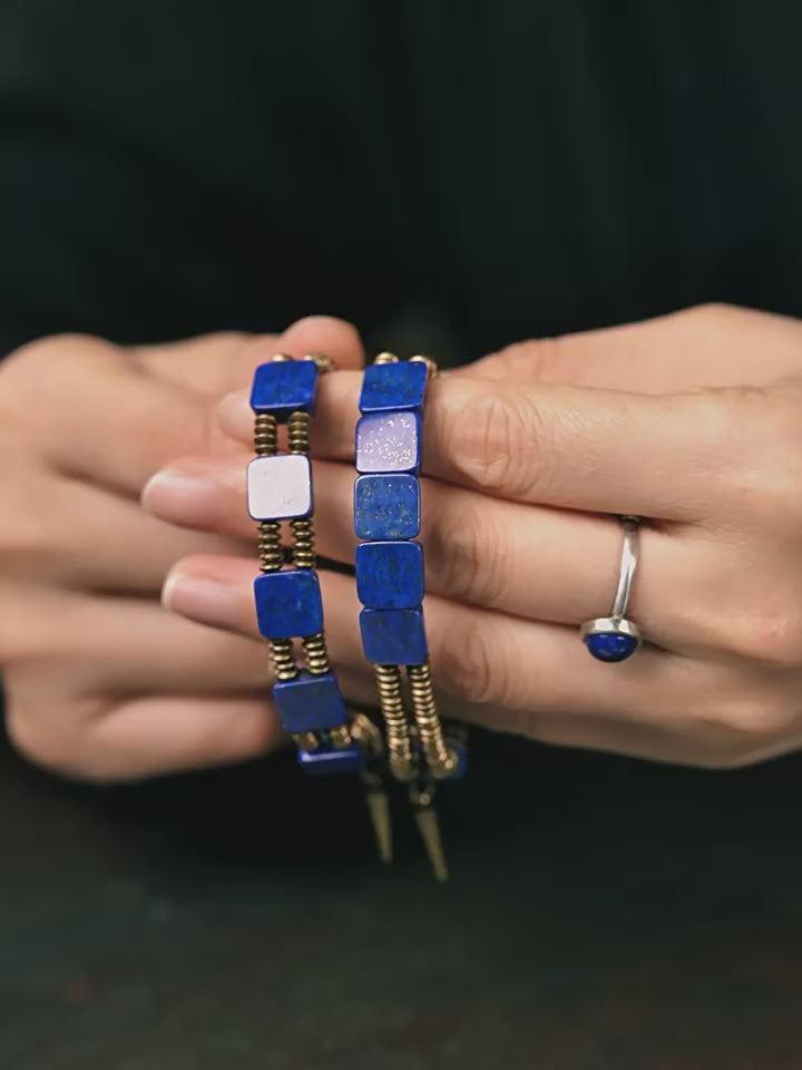 【Frozen Lake Night Pattern】Lapis Lazuli/Bronze Bracelet