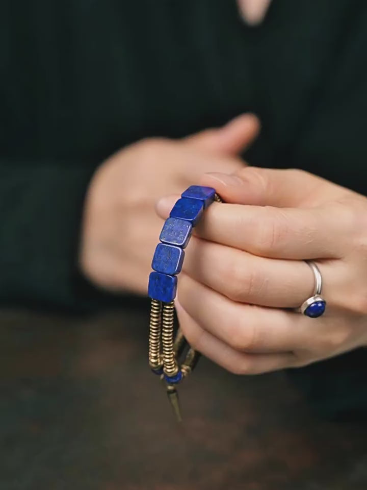 【Frozen Lake Night Pattern】Lapis Lazuli/Bronze Bracelet