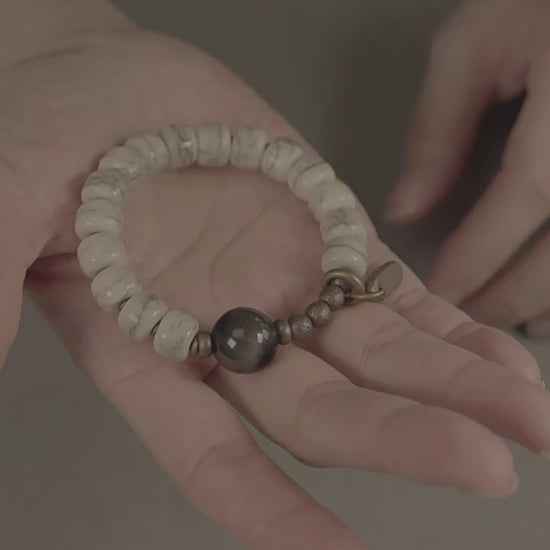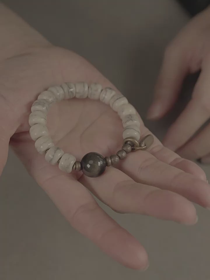 【White Tibetan Light】Bovine Bone / Obsidian Bracelet